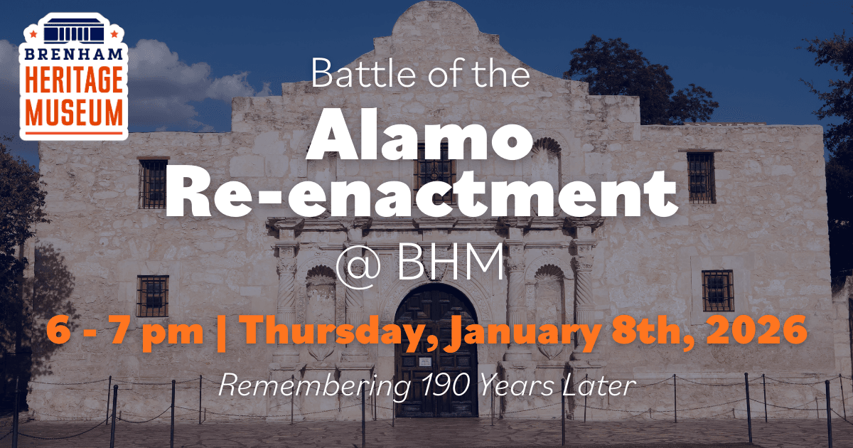 Brenham Heritage Museum is performing an engaging re-enactment of key events leading up to the Battle of the Alamo, brought to you by friends of the Washington County Historical Commission.